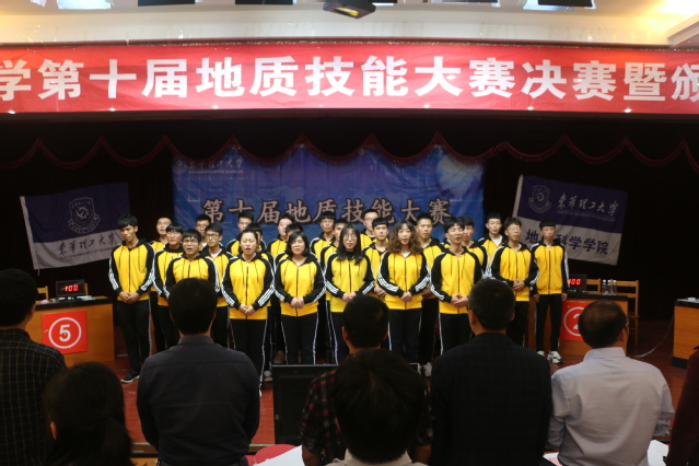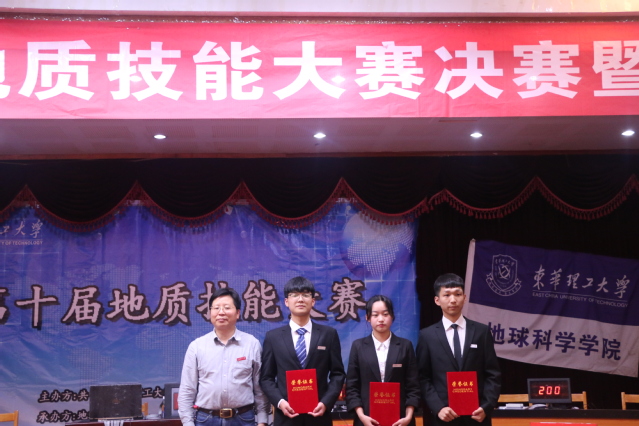 近日,由校团委、教务处、学工处主办,地球科学学院、放射性地质实验教学中心、地质调查研究院、核资源与环境国家重点实验室承办的东华理工大学第十届地质技能大赛总决赛暨颁奖典礼在广兰校区软件楼四楼报告厅举行。副校长聂逢君出席了典礼,教务处、学工处、校团委、地球科学学院等单位的负责人及相关专业学生400余人到场观摩比赛,聂逢君为比赛致辞。 比赛在慷慨激昂的《勘探队员之歌》歌声中拉开帷幕。比赛分共同必答题、选择必答题和抢答题三个环节。选手们沉着应对,气氛紧张,抢答题环节更是考验选手对专业知识从点到面的掌握。最终,高杭团队获综合技能一等奖,吴犇团队和钟宝元团队获综合技能二等奖,危雪峰团队、吴思健团队、张嵩团队获三等奖。聂逢君为获奖同学颁发了荣誉证书。 本次大赛充分展现了地质学子严谨踏实、奋发进取的优异精神风貌,推动了地学教育改革,提高了地学人才培养质量。让同学们深刻感受到了地质知识的魅力,激发了大家学习专业知识的兴趣,促进了其地质理论素质和实践能力的提升。同时,也为我校同学参加第六届全国大学生地质技能大赛打下了坚实基础。(图/文 谢涛峰)