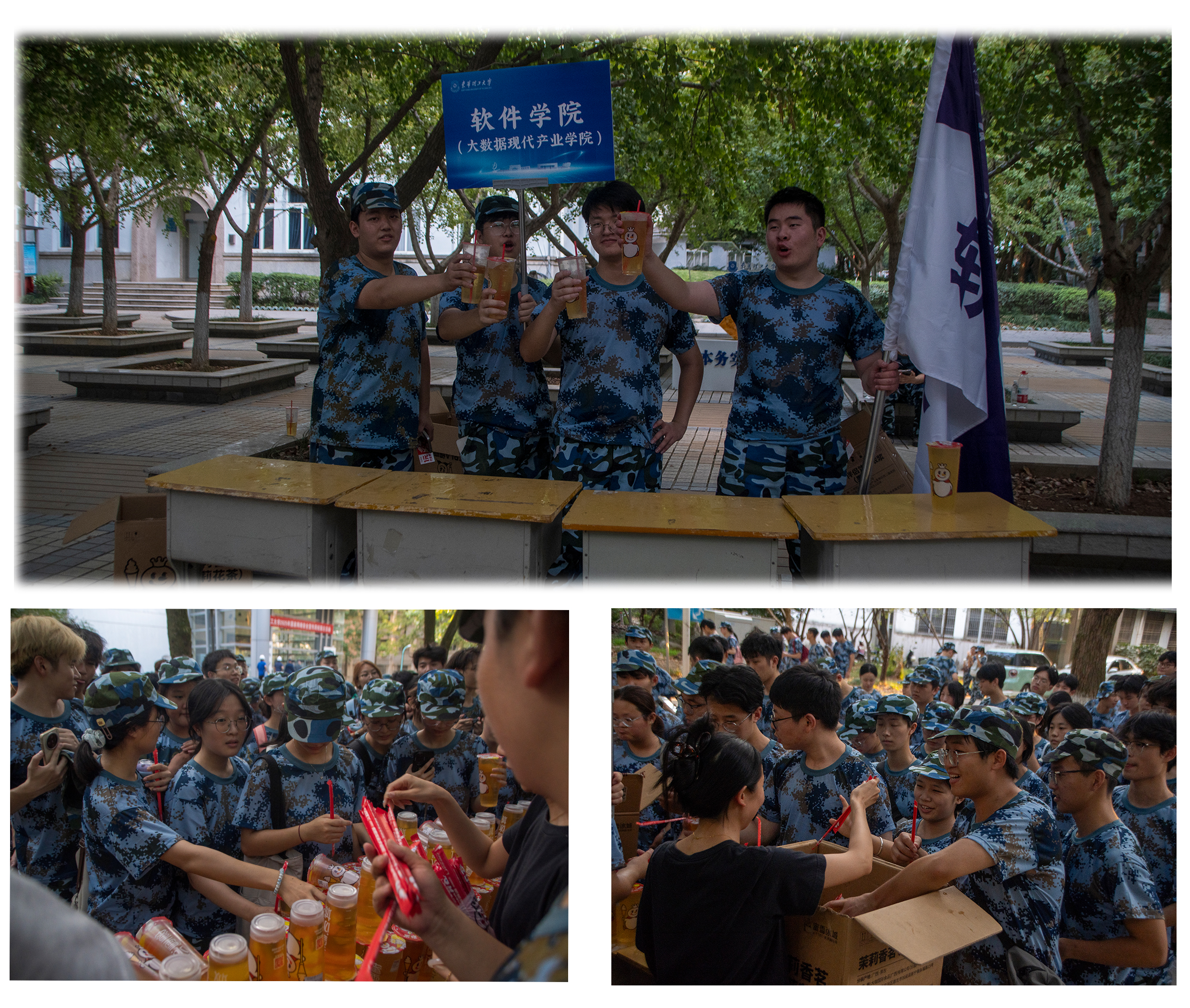 活动现场筹备充分,林荫道旁悬挂着“骄阳晒不退青春热血,软件送你专属清凉”的红色横幅,长桌上整齐摆放着茉莉花茶等各类消暑饮品。新生辅导员与志愿者提前到场等候,待新生完成阶段性训练后,为大家分发冰饮。新生们井然有序地领取饮品,脸上满是笑容。数据科学与大数据技术专业新生张钰轩表示:“刚结束训练就能喝到学院送的清凉饮品,感觉很解渴,疲惫感也减轻了不少”。