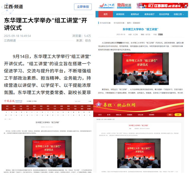 编者按:9月14日,东华理工大学举行“组工讲堂”开讲仪式。新华社客户端、大江网、中媒在线、映山红网等主流媒体对此进行报道,引发社会广泛关注。现将原文转载如下: