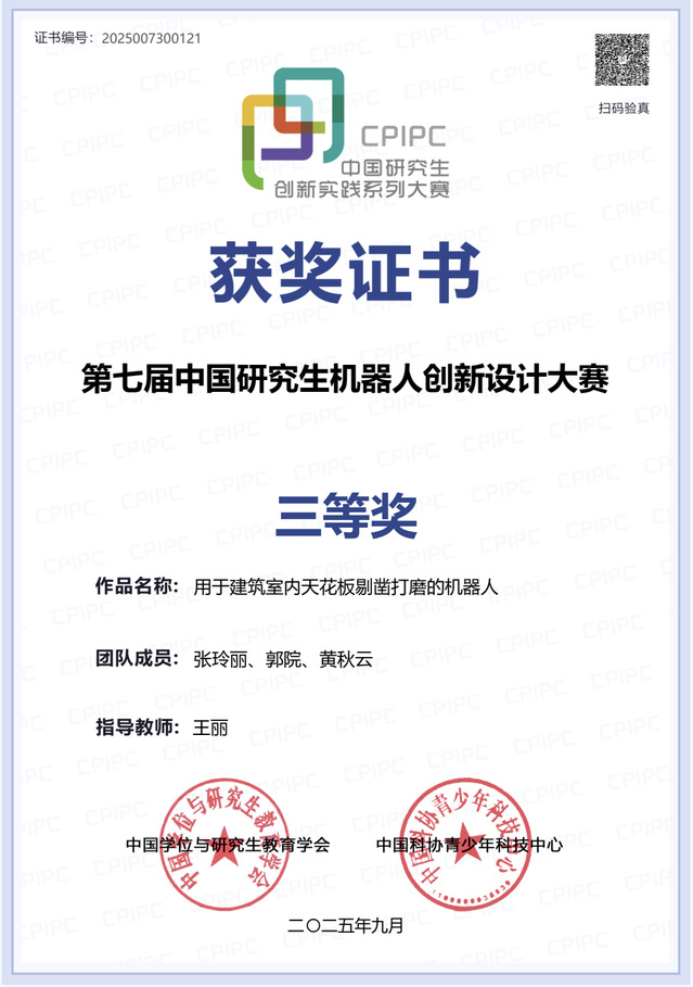 9月28日,由教育部学位管理与研究生教育司指导,中国学位与研究生教育学会、中国科协青少年科技中心主办,中共济南市委人才工作领导小组办公室、山东建筑大学承办的“具身探索 智筑未来”中国研究生机器人创新设计大赛在山东省济南市圆满落幕。我院研究生团队在全国总决赛中荣获三等奖1项