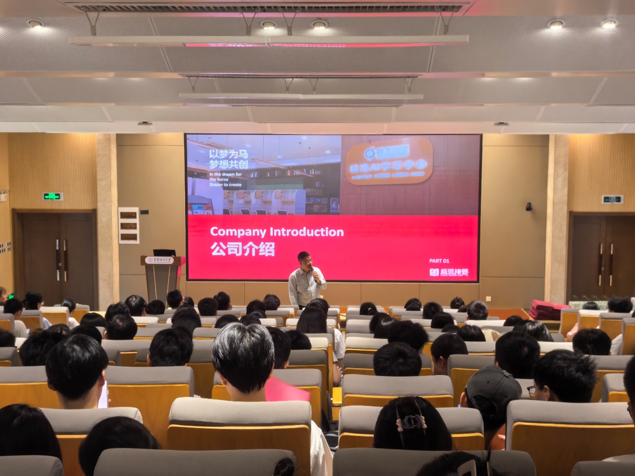 作为招聘方,范超强详细介绍了公司的发展现状与人才需求,并向学弟学妹们抛出了橄榄枝。他承诺为公司新人提供具有竞争力的薪酬、清晰的职业发展通道和良好的工作环境,真诚期待与更多优秀校友成为事业上的“合伙人”。在互动环节,同学们就岗位细节、职业前景等踊跃提问,范超强团队一一耐心解答,双向奔赴的诚意溢满全场。