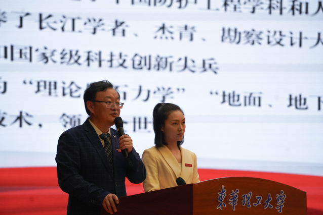 10月13日晚,东华理工大学在南昌校区青岚校园举行钱七虎院士科学家精神宣讲报告会。江西省科学技术协会主席徐景坤,东华理工大学党委常委、副校长朱笃,江西省科学技术协会宣传调研部部长熊春龙出席;东华理工大学党委常委、宣传部部长刘剑斌主持报告会。