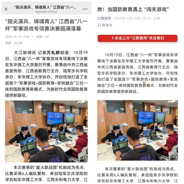 据悉,今年以来,江西省面向广大青少年,以品牌赛事为引领,创新举办兵棋推演大赛、国防素养大赛、演讲大赛等,推动全民国防教育向更深层次、更广领域发展,为培养担当民族复兴大任的时代新人贡献力量。