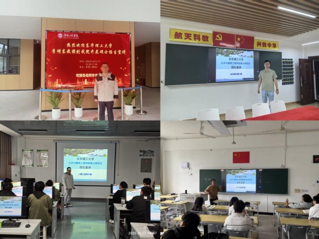 为切实做好2026年硕士研究生招生工作,精准挖掘优质生源,提升研究生培养质量,近日,我院组建了一支由梁炯丰院长带队,系主任、研究生导师代表等组成的宣讲团,赴赣东学院、新余学院、湖南工程学院、南昌理工学院、江西科技学院、江西职业技术大学等省内外多所高校,开展研究生招生宣传系列活动。