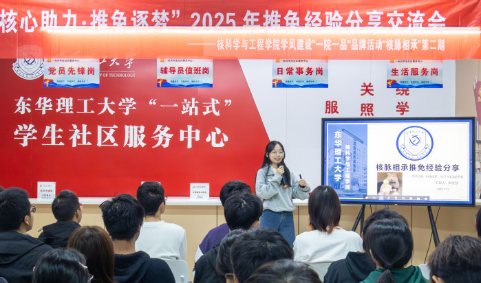 为深化“一院一品”学风建设品牌内涵,助力学生精准把握推免政策、科学规划升学路径,11月4日下午,东华理工大学核科学与工程学院在广兰校园“一站式”学生社区(学生宿舍南区9栋)举办了“一院一品”学风品牌“核脉相承””第二期活动“推免经验分享交流会”。学院全体辅导员、2名成功推免西安交通大学的2022级核工程与核技术专业学生及50余名学生代表参加了活动。