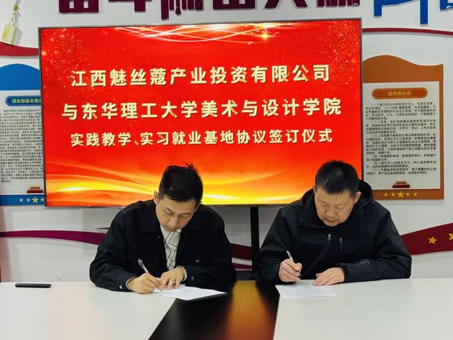 为深入推进校企合作,提升应用型人才培养质量,东华理工大学美术与设计学院与江西魅丝蔻产业投资有限公司于近日举行了实践教学、实习就业基地签约仪式。学院领导、企业代表以及相关教师出席了签约活动。