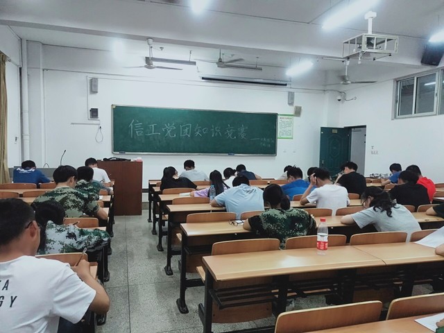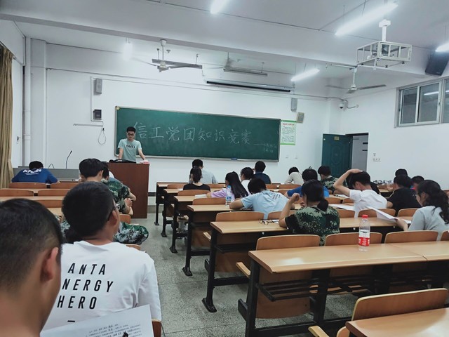 为加强同学们对党团知识的掌握和学习,提高广大团员的思想政治觉悟,增强团员归属感和认同感。9月22日晚7时,信息工程学院于第3教学楼举办了“喜迎七十华诞,青春告白祖国”为主题的党团知识竞赛。