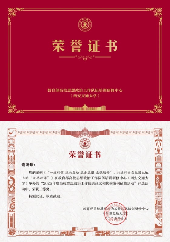 近日,教育部高校思想政治工作队伍培训研修中心(西安交通大学)公布了2025年度全国高校学生思想政治工作优秀论文与优秀案例征集活动的评选结果。东华理工大学地球与行星科学学院专职辅导员谢涛锋提交的工作案例《“一核引领 双向互动 三走三服 五课联动”,打造行走在大地上的“大思政课”》荣获优秀案例二等奖。