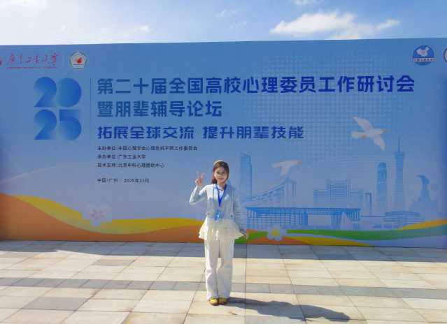 论坛期间,陈雨心与来自全国高校的优秀心理委员同台交流、互学互鉴,深度参与主题报告、实操工作坊及专题分论坛等关键环节,也结合我校实际,分享了班级心理服务的实践案例与成效,展现了我校心理育人工作的扎实基础。谈及参会感受,陈雨心表示:“此次入选与参会是荣誉更是沉甸甸的责任,未来我会把学到的先进理念和方法转化为实际行动,带动身边更多同学关注心理健康,让朋辈支持的微光汇聚成照亮校园的暖阳。”