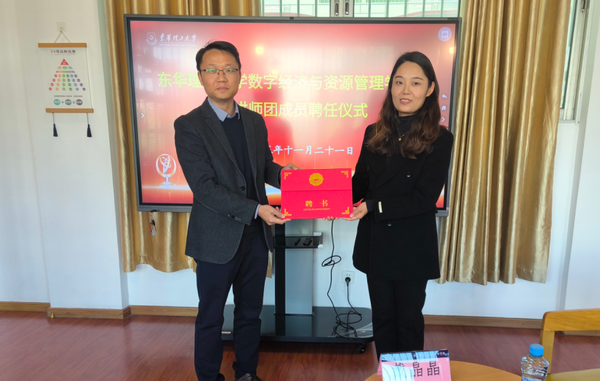专题辅导报告后,学院聘任戴晶晶为党课讲师团成员,并为其颁发聘书。
