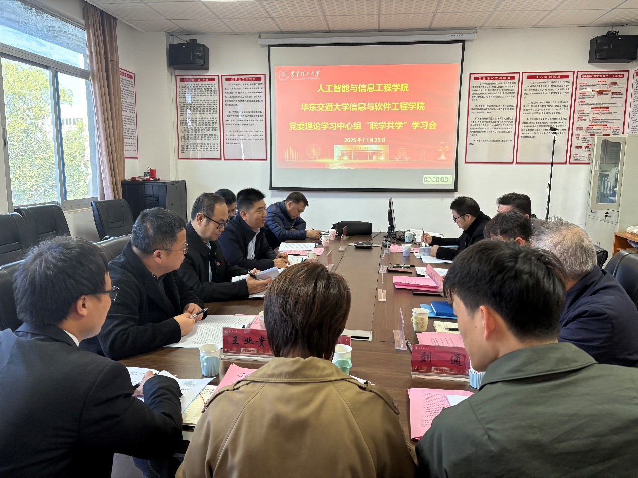 11月25日,东华理工大学人工智能与信息工程学院党委理论学习中心组与华东交通大学信息与软件工程学院党委理论学习中心组开展联学共学。