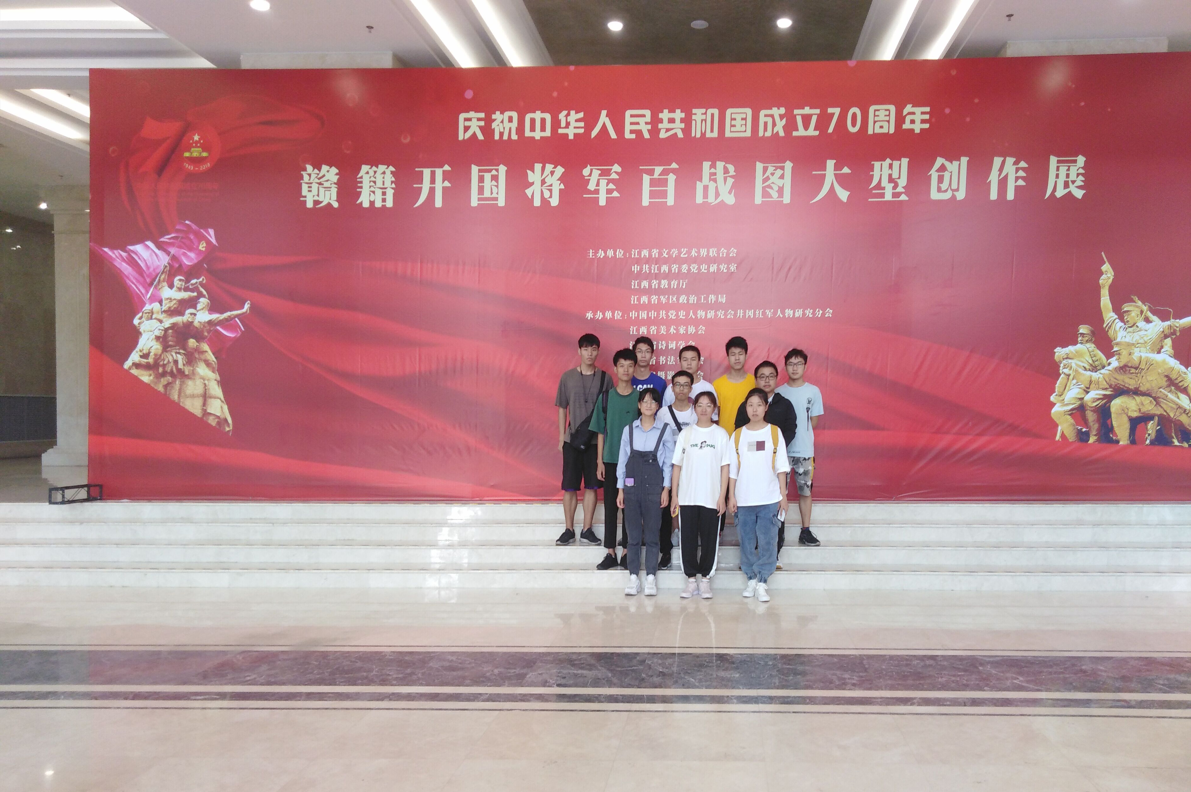 为庆祝中华人民共和国成立70周年,学习感悟赣籍开国将军彪炳史册的卓越功勋和伟大精神,2019年10月6日上午东华理工大学信息工程学院青年志愿者协会组织师生共同参观了由江西省文联、省委党史研究室、省教育厅、省军区政治工作局联合举办的“赣籍开国将军百战图”大型创作展览。