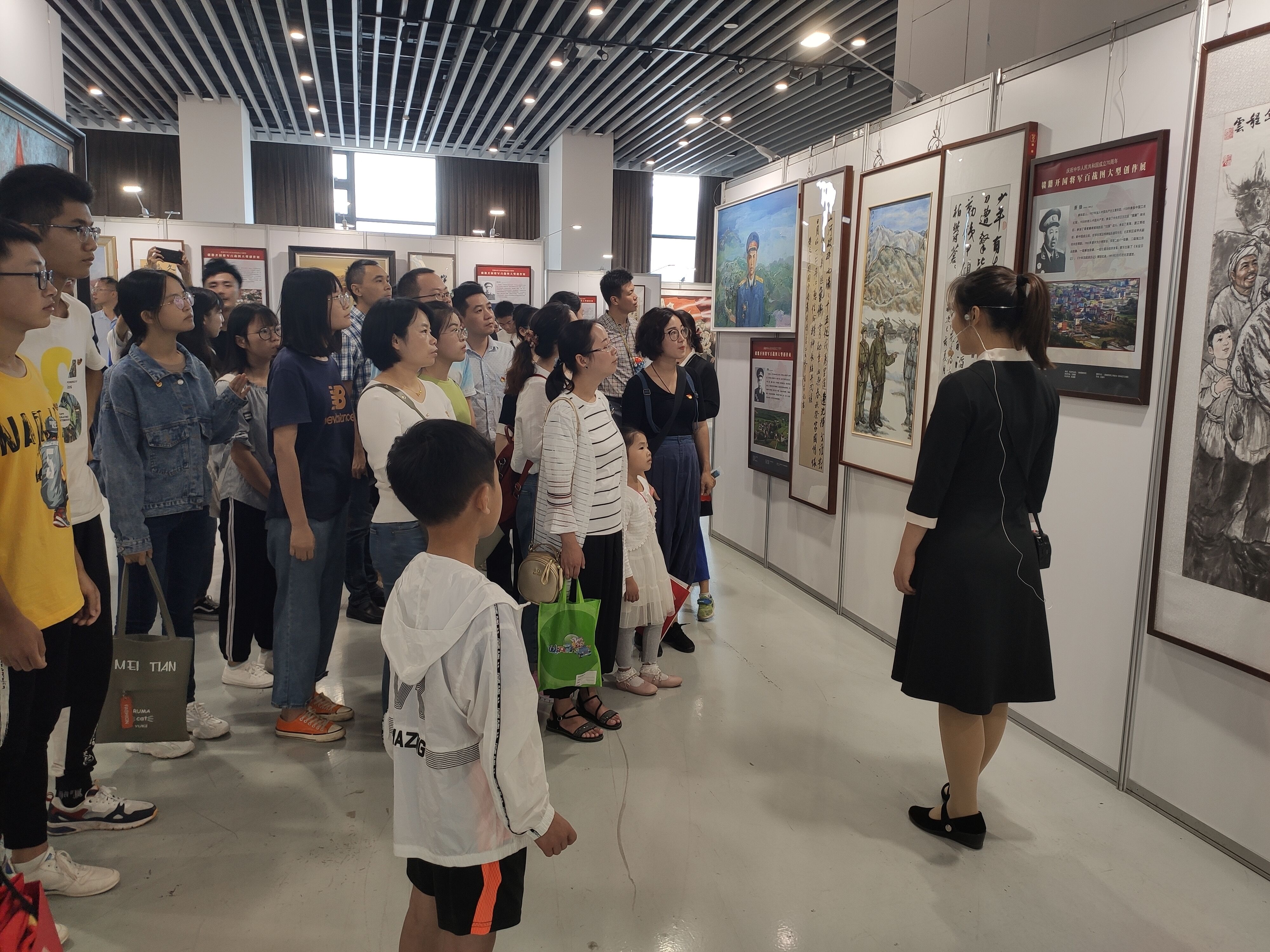 本次大型创作选取322位赣籍开国将军最动人、最精彩的人生片段为素材,通过美术、诗词、书法、摄影等艺术形式浓墨重彩地展现开国将军征战疆场的戎马生涯和崇高风范,生动诠释红色赣鄱为新中国成立做出的突出贡献。在讲解员的引导下,老师和学生们井然有序的走进大厅,只见那四面八方都挂着一个个精致的小橱窗,橱窗里就是漂亮而又珍贵的画卷。