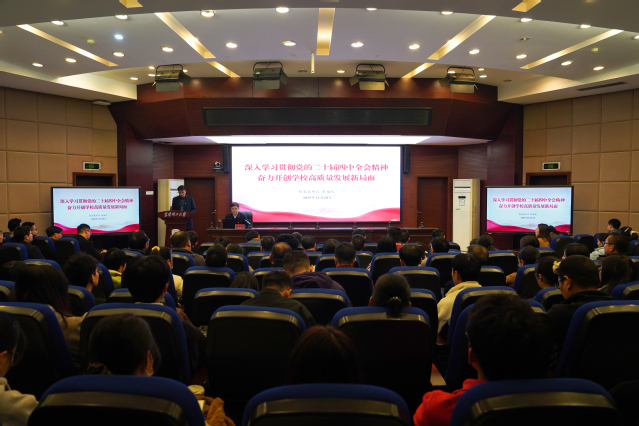 12月10日,东华理工大学党委书记张福庆在南昌校区广兰校园行政楼一楼报告厅宣讲党的二十届四中全会精神。学校党委办公室(校长办公室)、测绘与空间信息工程学院、马克思主义学院师生代表等200余人参加宣讲会。