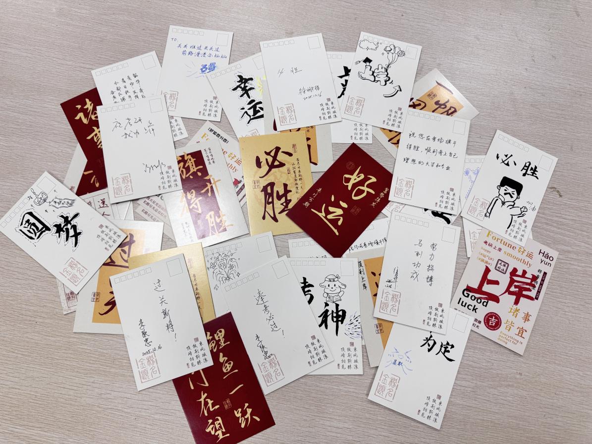 在交流环节,学院领导为参会学生代表逐一送上考研“暖心礼包”,并亲笔书写个性化寄语,表达对同学们的殷切期望与美好祝愿。
