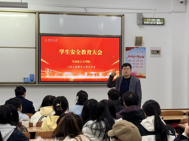 12月16日下午,东华理工大学马克思主义学院组织全体研究生展开安全教育大会。学院党委书记贺明银、院长华启和、党委副书记欧阳霞、辅导员李金花、班主任陈波老师等出席会议。