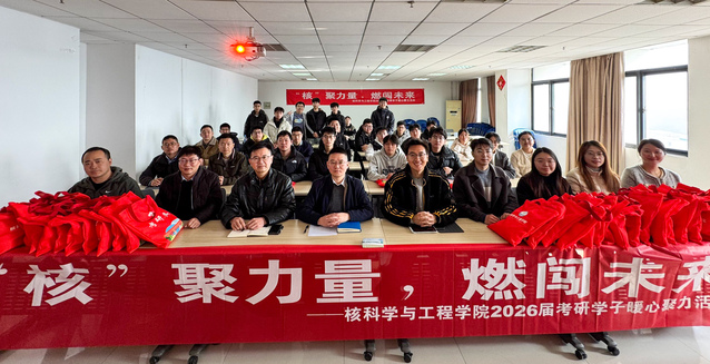 12月17日上午,核科学与工程学院在核工楼1216会议室举行“核聚力量 燃闯未来”2026届考研学子暖心助力活动,为2026届考研学子提振信心、传递温暖,助力他们冲刺迎考。学院党委书记张怀强、副书记刘顺祥、副院长魏强林,系主任、毕业班班主任、全体辅导员及40名考研学子代表参加了活动。