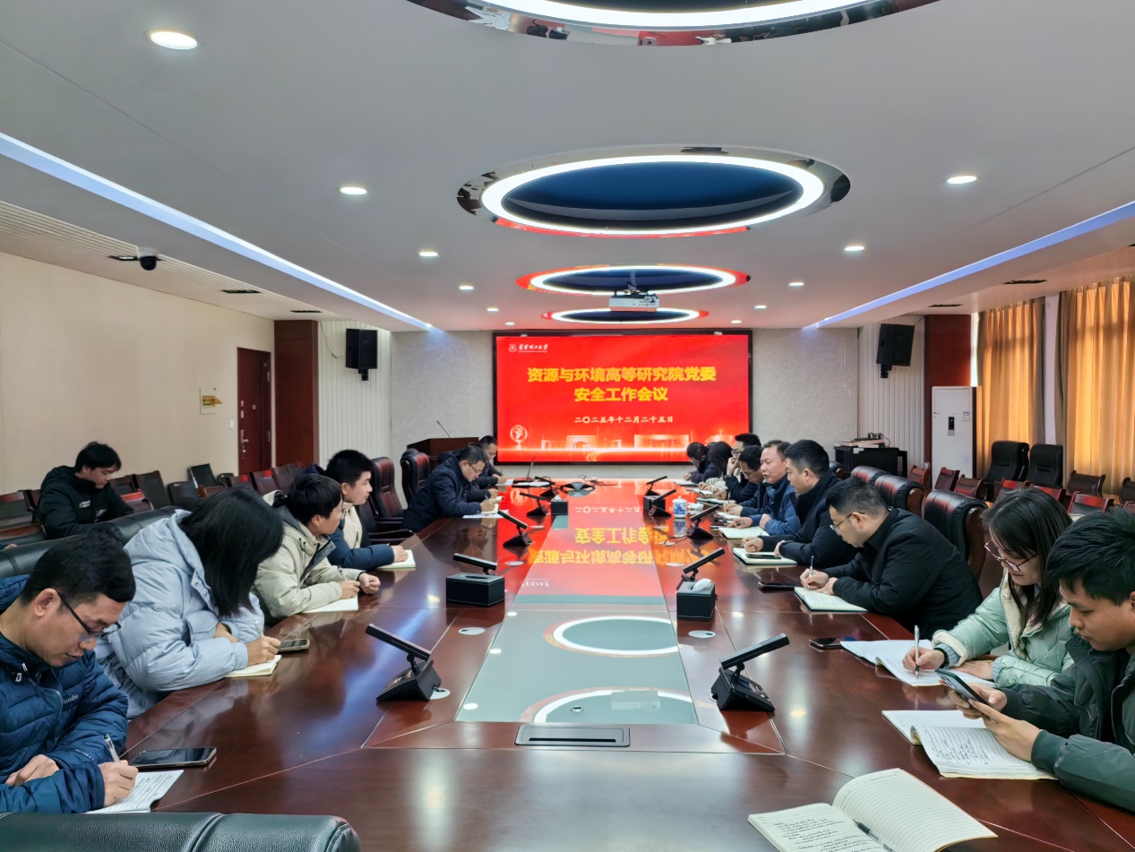 12月25日资源与环境高等研究院党委(以下简称高研院党委)召开安全稳定工作会议,党委全体班子成员出席,资源与环境高等研究院、江西省质谱科学与仪器重点实验室、分析测试研究中心等单位各实验室负责人和教师代表参加,会议由高研院党委书记周义朋主持。