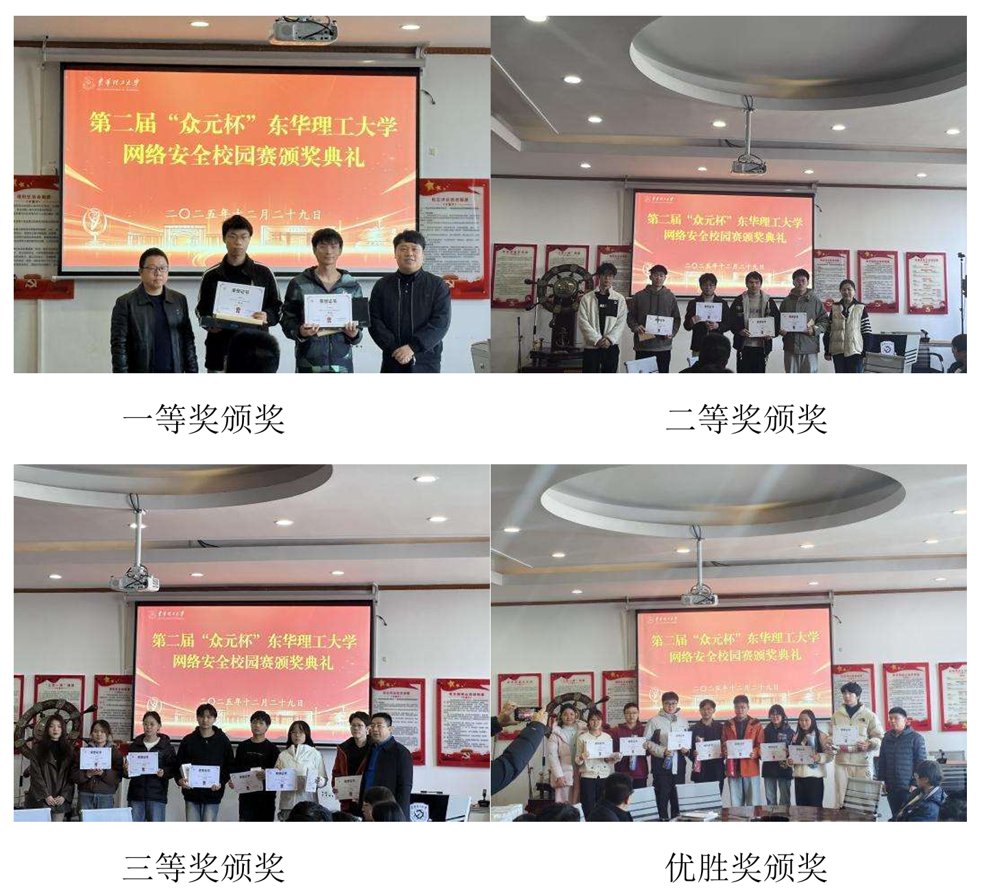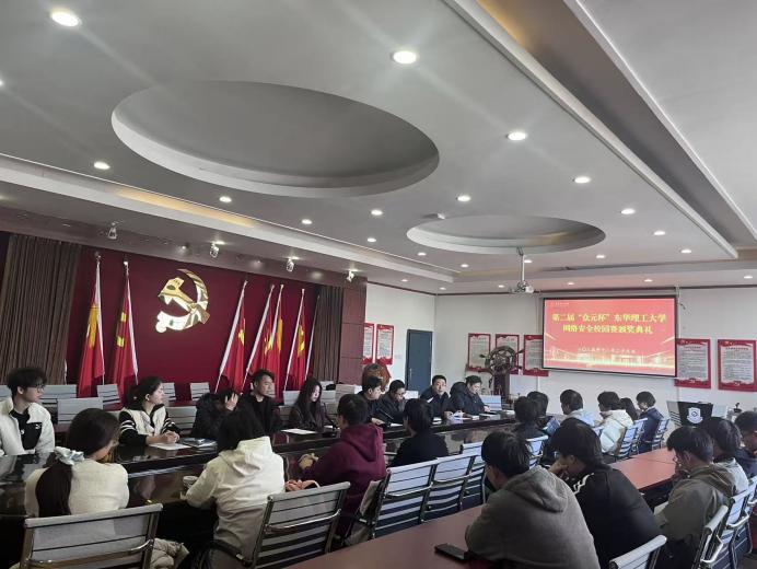 历经近两个月的精心筹备、广泛宣传与层层角逐,由人工智能与信息工程学院承办的东华理工大学第二届“众元杯”网络安全校园赛圆满落幕。12月29日,赛事颁奖仪式在软件楼316会议室盛大举行,学校与企业相关领导、教师代表及全体获奖学子齐聚一堂,共同见证荣耀时刻。