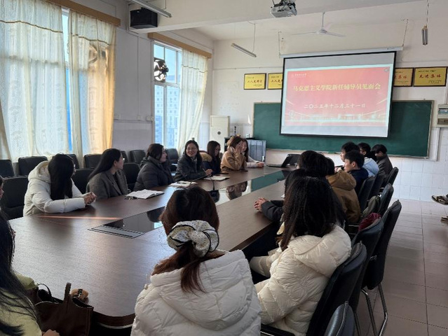 12月31日上午,东华理工大学马克思主义学院在测绘楼505会议室召开新任辅导员见面会。会议由学院党委副书记欧阳霞主持,原兼职辅导员李金花、新任兼职辅导员肖柯耶·阿力甫及学院全体研究生参加。