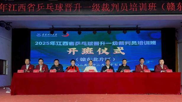 12月27日至28日,江西省乒乓球一级裁判员培训班在东华理工大学(抚州校区)顺利开展。江西省乒乓球协会副主席、国际级裁判员屈荣莉,江西乒协副主席韩晓云,东华理工大学体育与艺术学院院长牟顶红,抚州市教体局副局长张斌,抚州市乒乓球协会主席常文出席活动;江西省乒协副秘书长、国际级裁判员袁磊及邱诗咏、李中庆、王剑等国际级裁判员,国家级裁判员郭智刚担任培训讲师。本次培训由江西省乒乓球协会主办,东华理工大学(抚州校区)承办,吸引近百名乒乓球爱好者及相关专业学生参与。