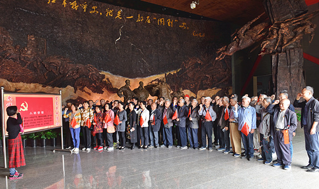 跟随讲解员的脚步,老党员们听得格外认真,不时还提出一些感兴趣的问题。两层的纪念馆,信息量很大,老党员一边听讲解,一边读文字、看图片、观实物,了解五次反“围剿”的历史背景、军力对比、红军作战思想、战斗经过和战争结果,深切感受红军指战员英勇顽强的战斗精神和苏区人民奋勇支前的历史场景。参观结束后,老党员在一楼大厅的伟人塑像前举行了重温入党誓言。