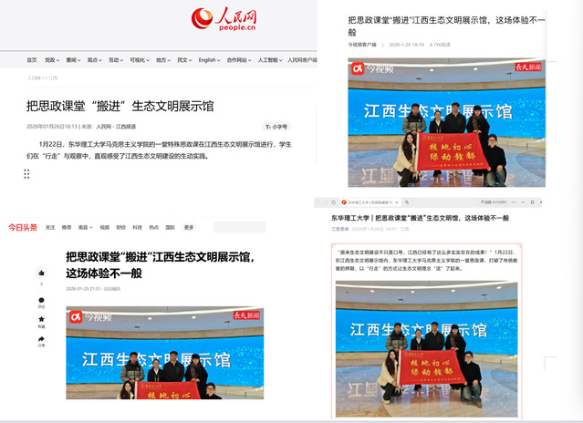 编者按:近日,东华理工大学马克思主义学院创新思政课教学形式,将课堂从教室延伸至江西生态文明展示馆,开展“行走的思政课”现场教学活动。人民网、今日头条、今视频客户端、江西思政等主流媒体对此进行报道,引发社会广泛关注。现将原文转载如下: