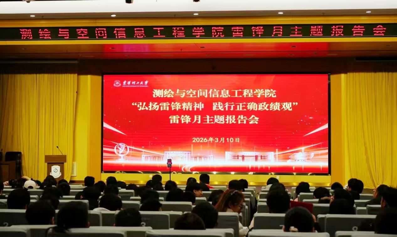 3月10日,东华理工大学测绘与空间信息工程学院举办“弘扬雷锋精神 践行正确政绩观”雷锋月主题报告会。学院特邀三位先进典型代表与全体党员师生齐聚实验大楼一楼报告厅,弘扬雷锋精神、共学榜样事迹、共悟精神真谛。