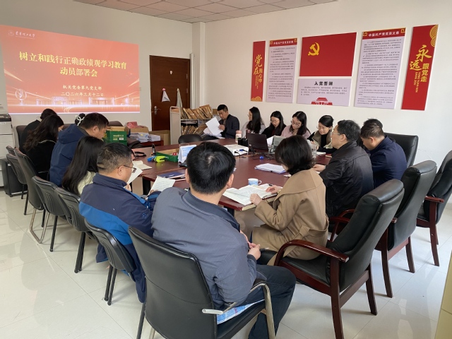 会议要求,支部全体党员要按照学校《关于在全校开展树立和践行正确政绩观学习教育的工作安排》,结合2026年部门工作重点,主动投入学习,自觉树立和践行正确政绩观,把学习教育成果转化为推动学校高质量发展的生动实践,为学校学科发展和特色高水平大学建设提供强有力的人才支撑。