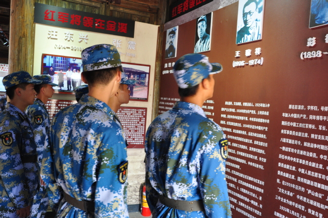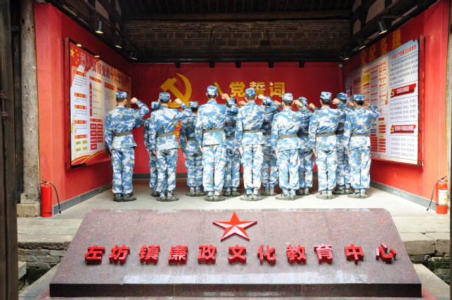 在金溪县左坊镇后龚村,全体党员瞻仰了周恩来、朱德和王稼祥三位革命元勋主体雕像,参观了周恩来旧居、朱德旧居、王稼祥旧居、红一方面军司令部、政治部、卫生部和通讯连旧址等十三栋红色历史建筑。在左坊镇廉政文化教育中心,宋建勇带领全体定向培养海军士官预备党员重温了入党宣誓誓词,面对着党旗,大家接受了一次特殊的身心洗礼。