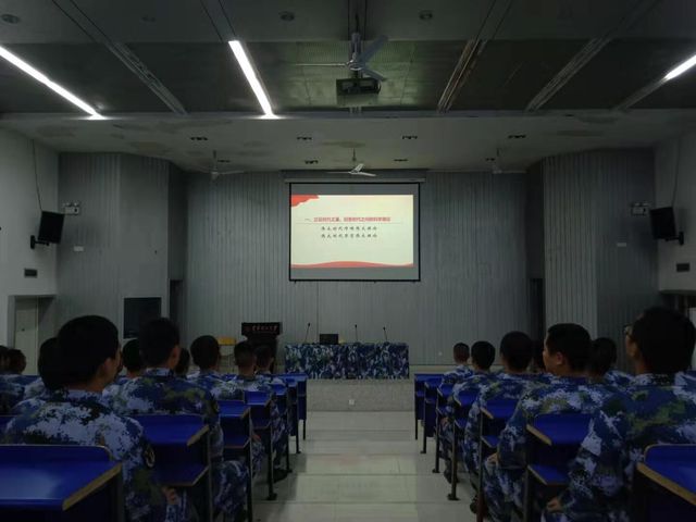 大道至简,实干为要,针对定向培养士官反映强烈的不是特别了解自己未来加入的海军需进行哪些方面的知识储备及任职要求这一问题,学院立即与合作培养单位海军航空大学联系,请他们来为定向培养士官答疑解惑。海军航空大学王建国大校于10月23日从千里之外的烟台赶到学校为定向培养士官做了题为《海军岸防兵及专业情况介绍》的讲座,并与定向培养士官进行了互动问答。对于定向培养士官反映的了解时事政治渠道不是特别畅通、理论学习不够的问题,学院将网络引入海军园区学术报告厅,自2019年11月20日起,国防教育学院开始组织18、19届全体定向培养士官在海军园区报告厅观看新闻联播,并深入学习《习近平新时代中国特色社会主义思想三十讲》的部分内容。并将收看新闻联播作为学院日常管理和思想政治教育的一种长效制度。