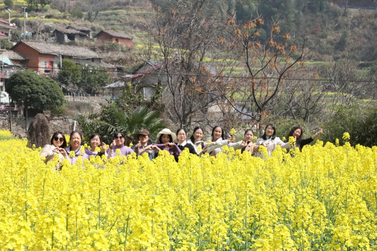 在牛岭村,女大家教师们漫步于麻石古商道,这条被中央媒体点赞、由麻石铺就的千年古道,历经岁月打磨温润发亮,曾是赣商盐茶贸易黄金通道,一步一景皆藏千年历史底蕴。春日里,1000余亩油菜梯田铺满山间,青山伴云雾、溪水和鸟鸣,女教师们边走边赏、随手记录,在古风意境中放松身心、治愈心灵,充分感受赣鄱大地的自然与人文之美。
