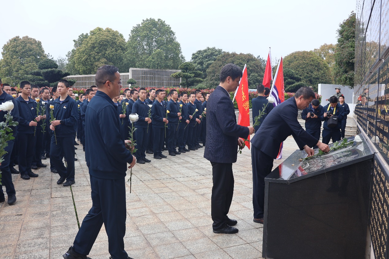 学院师生在工作人员引导下祭扫烈士墓,依次向英名墙敬献鲜花,追思缅怀革命先烈。