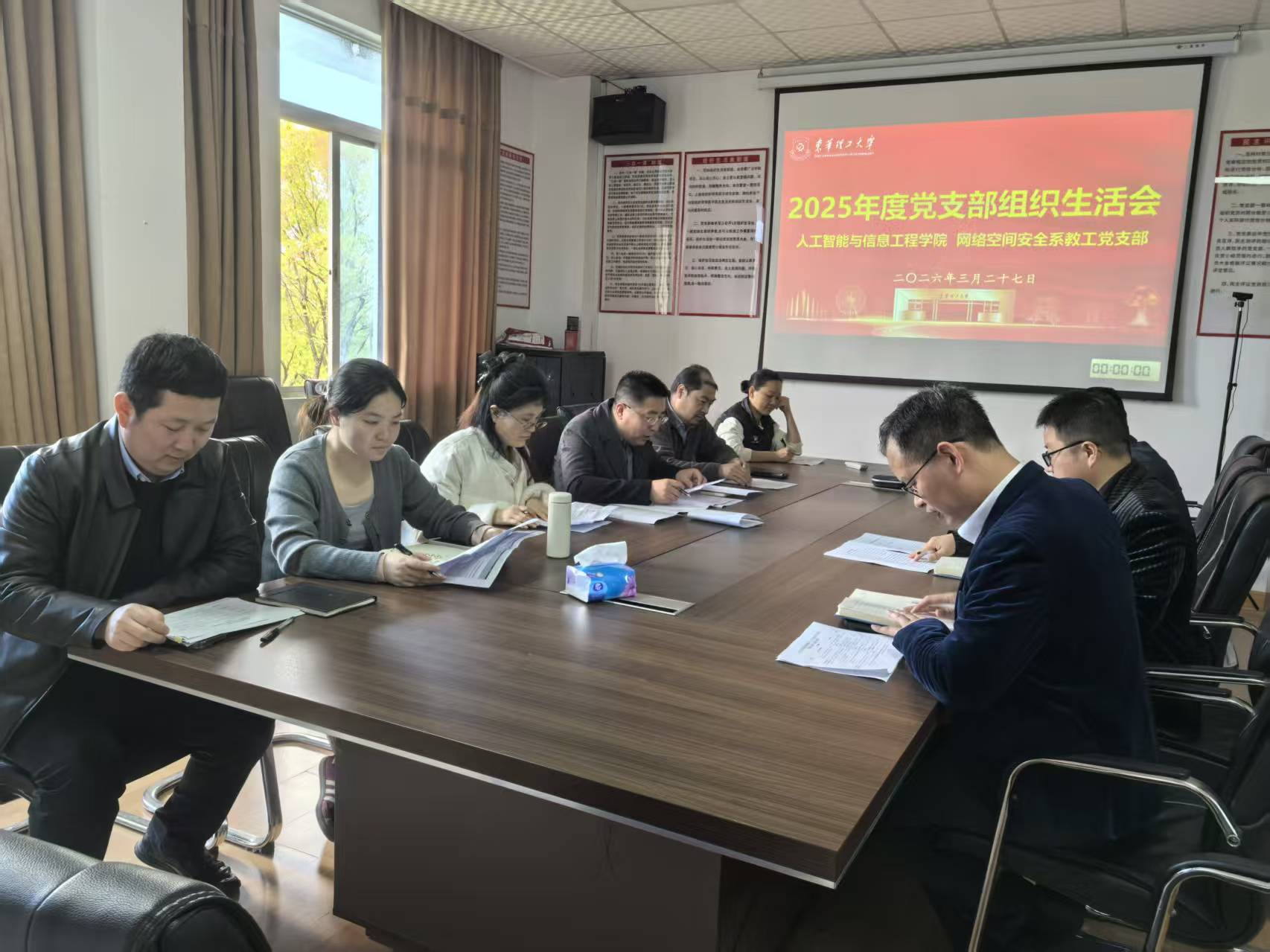 按照学校党委统一部署,人工智能与信息工程学院党委下属9个党支部于3月23日至27日分别召开2025年度组织生活会并开展民主评议党员。学院领导班子成员以普通党员身份参加所在党支部组织生活会,院党委委员列席指导。