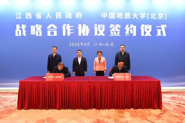4月2日,江西省与中国地质大学(北京)签署战略合作协议。省长叶建春会见中国地质大学(北京)党委书记雷涯邻、校长赵志丹,双方共同见证签约。