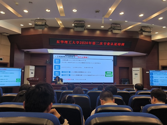 4月7日下午,教学质量监测与评估中心在南昌校区行政办公楼一楼报告厅组织开展2026年第二次专业认证培训。本次培训紧扣我校专业建设高质量发展需求,旨在进一步提升专业认证工作规范化水平,助力各认证专业精准把握认证理念、吃透认证标准、明确工作要求,系统掌握认证全流程操作方法与核心要点,推动我校专业认证工作提质增效。