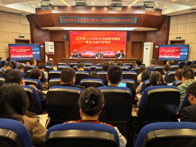 4月8日下午,东华理工大学在广兰校园召开政府采购警示教育暨业务操作培训会议,进一步规范学校政府采购工作,强化廉洁自律意识,提升采购业务数字化水平。校党委常委、副校长朱笃出席会议并讲话,江西省纪委监委驻校纪检组负责同志作专题警示教育。
