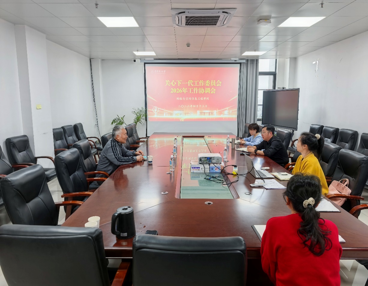 4月13日下午,测绘与空间信息工程学院召开关心下一代工作委员会(以下简称“关工委”)2026年工作协调会。校关工委委员陈原斌到会指导,学院院长陈文波,院党委副书记苏幸及相关老师参加会议。