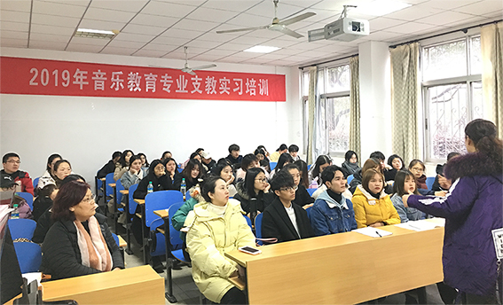 2019年12月15日上午8点30分,艺术学院在北区艺术楼召开了“2020年春季音乐专业实习支教培训班开班典礼”。学院院长冯立、副院长王春阳,音乐与舞蹈系主任杨菁,副主任杨秀君,音乐与舞蹈系教师黄霜阳、聂蔚、吕荷,以及17级全体支教学生参加会议。