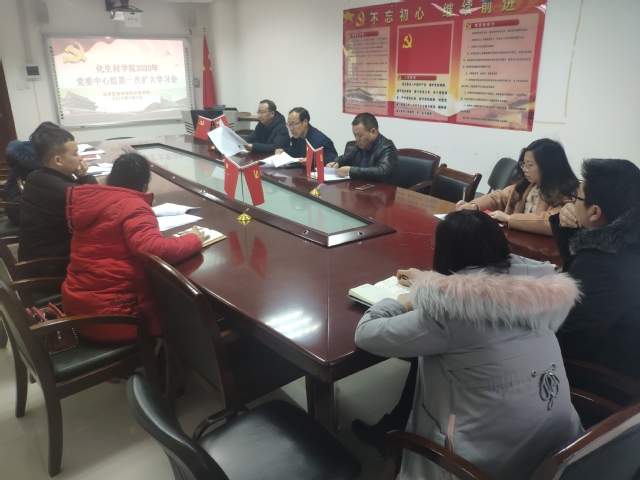 2020年1月9日下午,化学生物与材料科学学院在核工楼510会议室召开2020年第一次党委中心组(扩大)学习会。学院党委委员和各党支部书记参加会议,学院党委书记余修日同志主持会议。