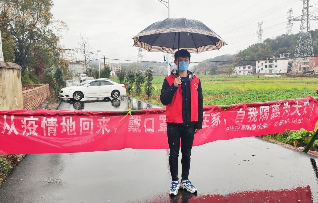 随着疫情的发展,为了坚守人民的健康防线,在这个特殊时刻很多村庄、乡镇也开始封路检查。当知道老家江西省萍乡市上栗县彭高镇在抗疫情需要志愿者时,身为预备党员的在家大学生刘德仁立刻毫不犹豫地报名参加,以拼搏之姿战斗在战“疫”第一线。