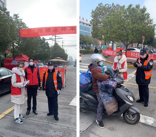 “防控就是责任,疫情来了,我们不上谁上”,入党积极分子朱欣怡在江苏省泰州市靖江市江阳路十字路口协助交警,对来往车辆进行一一记录。