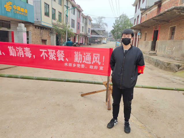 “守土有责,守土尽责。各自管好自己的村子,不让外来人员随便进入,并做到村不漏户,户不漏人。”党员周健也在江西省吉安市吉水县水田乡石鼓村为疫情贡献自己的一份力量。