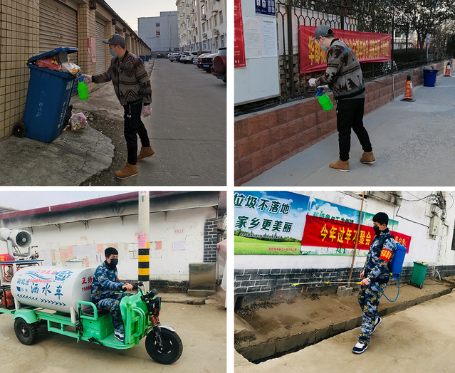 危难时刻显担当,党员孙晋与高浩分别在山东潍坊高新区新城街道锦城社区与山东省临沂市河东区郑旺镇高洪瑞村为各自小区的各个区域进行消毒。他们不顾危险,每日坚持对小区进行消毒处理,恪尽职守,克服一切困难。连续多日的辛苦工作后,他们仍然坚持在一线,充分展现了新时代党员无私奉献的情怀。