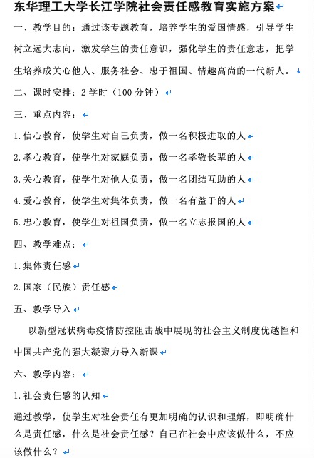 面对全国上下一心,众志成城抗击疫情的大氛围,学院思政部教研组研究制定了《东华理工大学长江学院生命教育与爱国教育实施方案》,全体思政教师同备一堂课,结合疫情防控,将思政教育融入线上课堂中,转“危”为“机”,将此次疫情中的各种信息转化为鲜活的教学资源,对学生开展生命教育和爱国主义教育等线上主题教育,厚植学生爱国情、砥砺强国志、实践报国行,引导学生正确认识生命的质量和意义,增强命运共同体意识,不断坚定当代大学生爱国力行的使命责任。