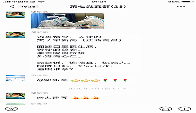 在七支部群里,每每看到邹新亮发布的新诗词,老党员们给予大大的点赞,“邹新亮生活情趣高雅,欣赏后都非常有画面感,诗中有画,令人浮想联翩“”满满的正能量“。支部书记荣海宁更是夸赞“打开微信,看到好诗一首,为我支部有一位才华横溢的诗人点赞”。(图/曹捷生 文/曹捷生 张和西)