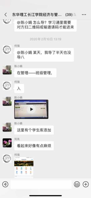 陈妮老师认为,开展线上教学绝不是布置完,直播完就结束了,往往需要在课后花费更多的时间去了解学习动态和需求,帮助解决学习过程中的困惑。好在学习通的后台数据可以帮助老师了解每一位学生的学习轨迹,包括课程视频观看时间、任务点完成数量、资料下载数量、访问数量、作业提交与否、参加讨论的活跃程度等等,陈妮老师通过不定期在群里公布后台数据结合私聊的方式对学生进行督促,以保证教学效果。