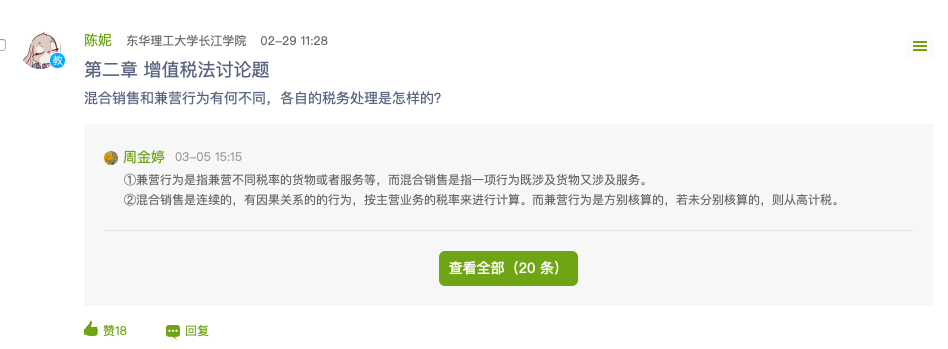 《税法》是经管系会计学、财务管理专业的核心课程,目前已建成院级线上精品课程资源,由李宏彪、孟召博、叶海平、陈妮四位老师共同录制课程视频37个,此外还包括课件资料、习题库以及课外阅读资料,线上资源丰富。如何最大化、最优化利用精品课程资源,做好教学设计,将已有的课程资源与直播讲授方式相结合,调动学生学习积极性,保证线上教学质量成为了陈妮老师需要考虑的关键问题。