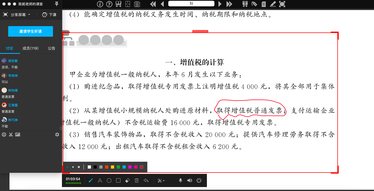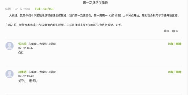 为有效应对新型冠状病毒肺炎疫情对教学工作的影响,切实做到“停课不停学,停课不停教”,按照学院统一部署,各系教师积极投入线上教学准备工作,通过微信群开展教学讨论,学习线上教学技术,熟悉平台操作,确保疫情防控期间教学工作不断档。今天,让我们一起走进经济与管理系陈妮老师的《税法》课堂。