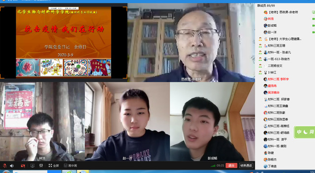 为讲好疫情防控这堂深刻、生动、鲜活的思政课,教育引导学生增强爱国主义与厚植家国情怀,3月9日,学院党委书记余修日通过网络视频课堂,给2018级材料科学与工程专业学生精心讲授了一堂“疫情”专题思政课。课程以“抗击疫情,我们在行动——讲好一堂爱国主义精神‘必修课’”为主题,线上与学生交流疫情防控的体会感悟,引导学生面对疫情防控“战疫”做到“五要”,弘扬正能量,汇聚打赢疫情防控阻击战的强大合力。